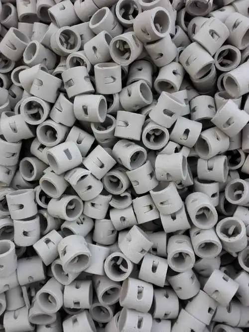 鲍尔环是一种新型高效的环形填料,在拉西环的基础上改进而来,其结构特点为在环壁上开设了许多矩形窗孔,窗孔的叶片向环中心弯曲,相互搭接,既保留了环形填料的流通空间,又增加了气液接触面积和湍流程度。该填料具有比表面积大、空隙率高、阻力小、传质效率高、操作弹性大等优势,能有效改善气液两相的分布性能,减少沟流和壁流现象,广泛应用于化工、石化、冶金、环保等领域的传质设备中。