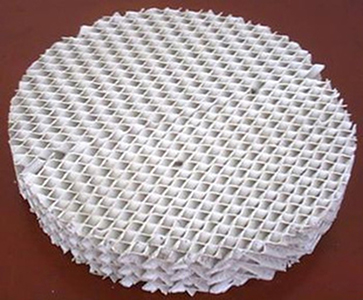 陶瓷规整填料是一种以优质陶瓷为原料,经特殊成型与烧结工艺制成的结构化传质元件,凭借规则的几何结构与优异的耐腐蚀性,成为化工、环保等领域高效分离的核心组件。其表面光滑且多孔,通过波纹、网格等有序结构构建均匀流体通道,有效减少沟流、壁流现象,兼具比表面积大(50-750㎡/m³)、空隙率高(>80%)、压降小的优势,传质效率较传统散堆填料提升 30%-50%,且耐高温(可达 1000℃以上)、耐强酸强碱,尤其适用于腐蚀性物料的分离场景。